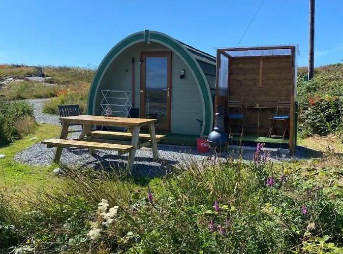 Die Hotel Earls View Maxi Pod hat eine Mikrowelle, einen Minikühlschrank und einen Wasserkocher in einer Küchenzeile für Selbstversorger. Von der Villa sind es 58 Minuten mit dem Auto zum Flughafen Connemara.